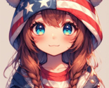 - PATRIOTIC AMERICAN Flag Anime Girl Bear Hood Eared INSTANT DOWNLOAD Graphic JPG