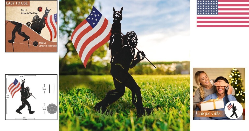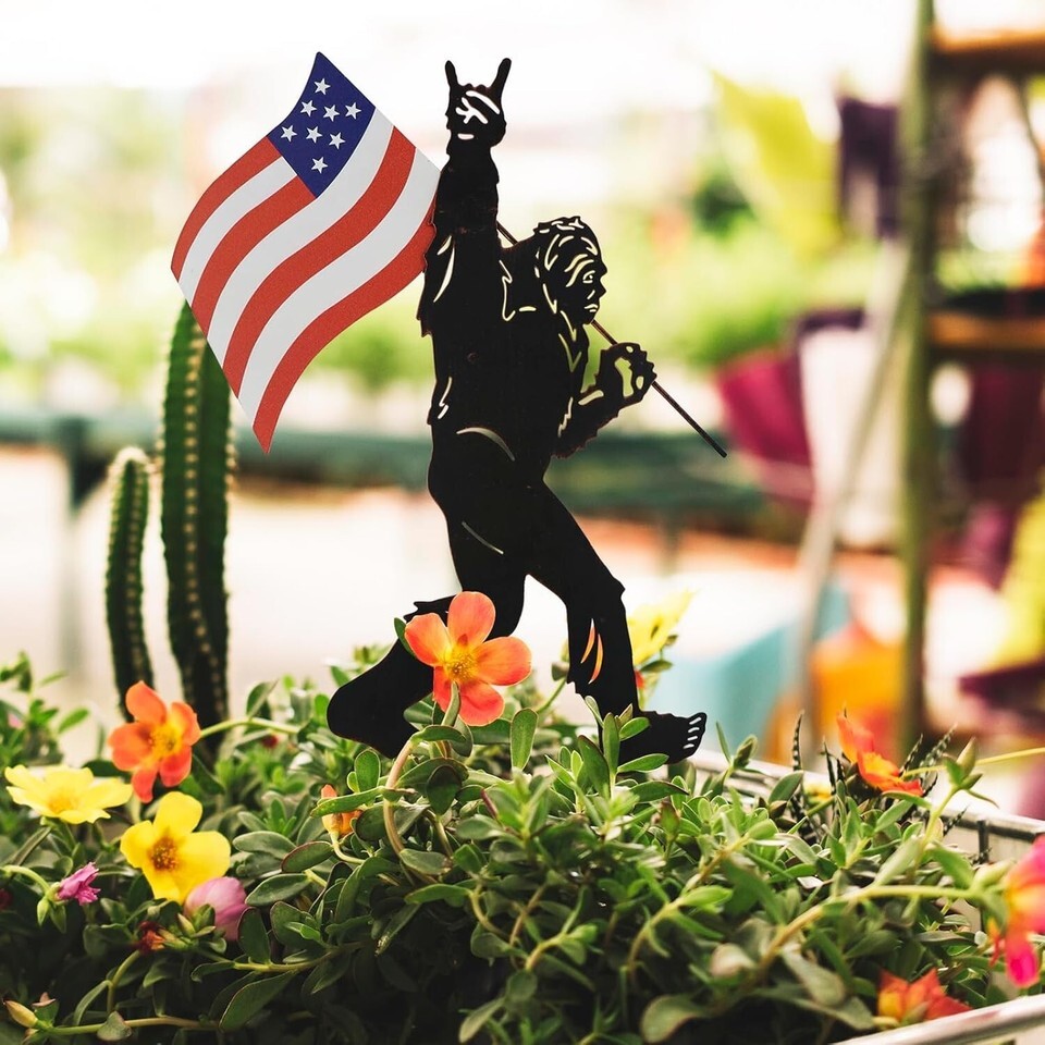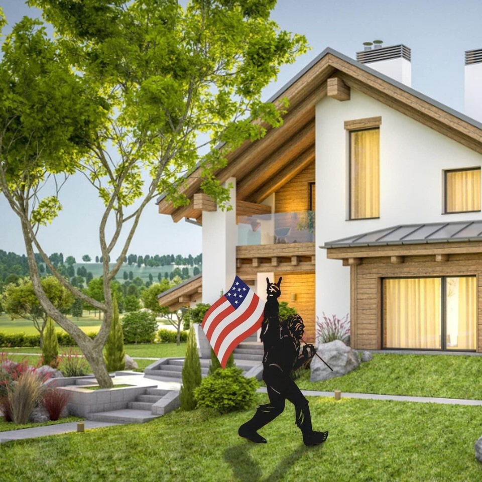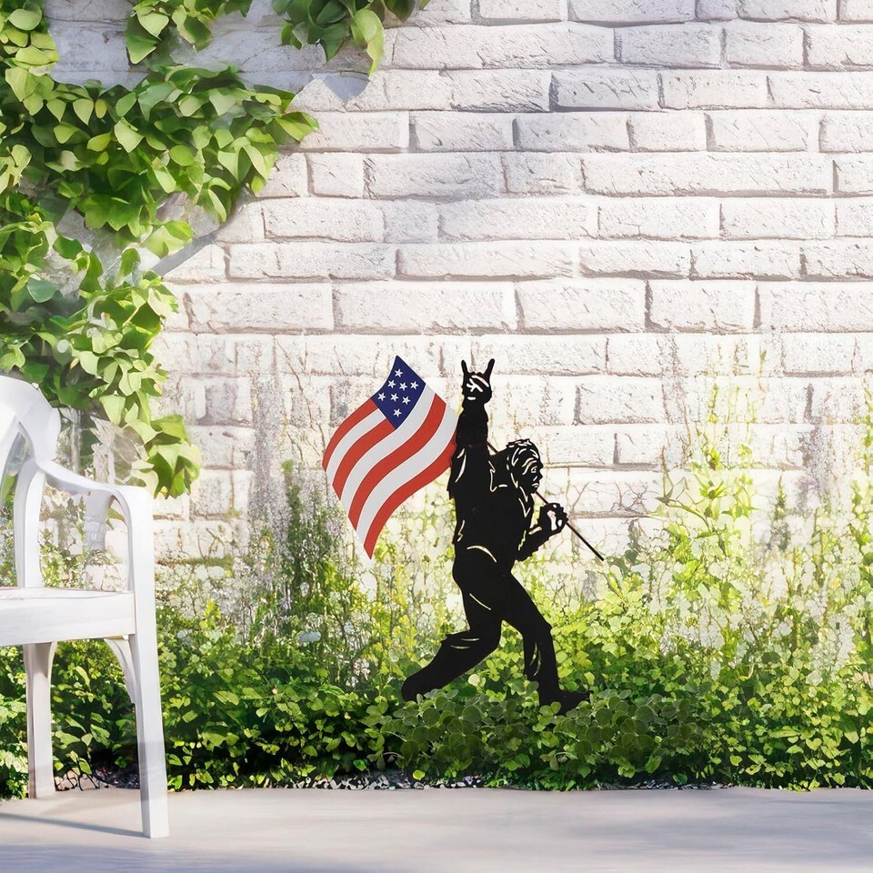 - Patriotic Bigfoot Metal Garden Stakes - Unique Outdoor Yard Art Decoration