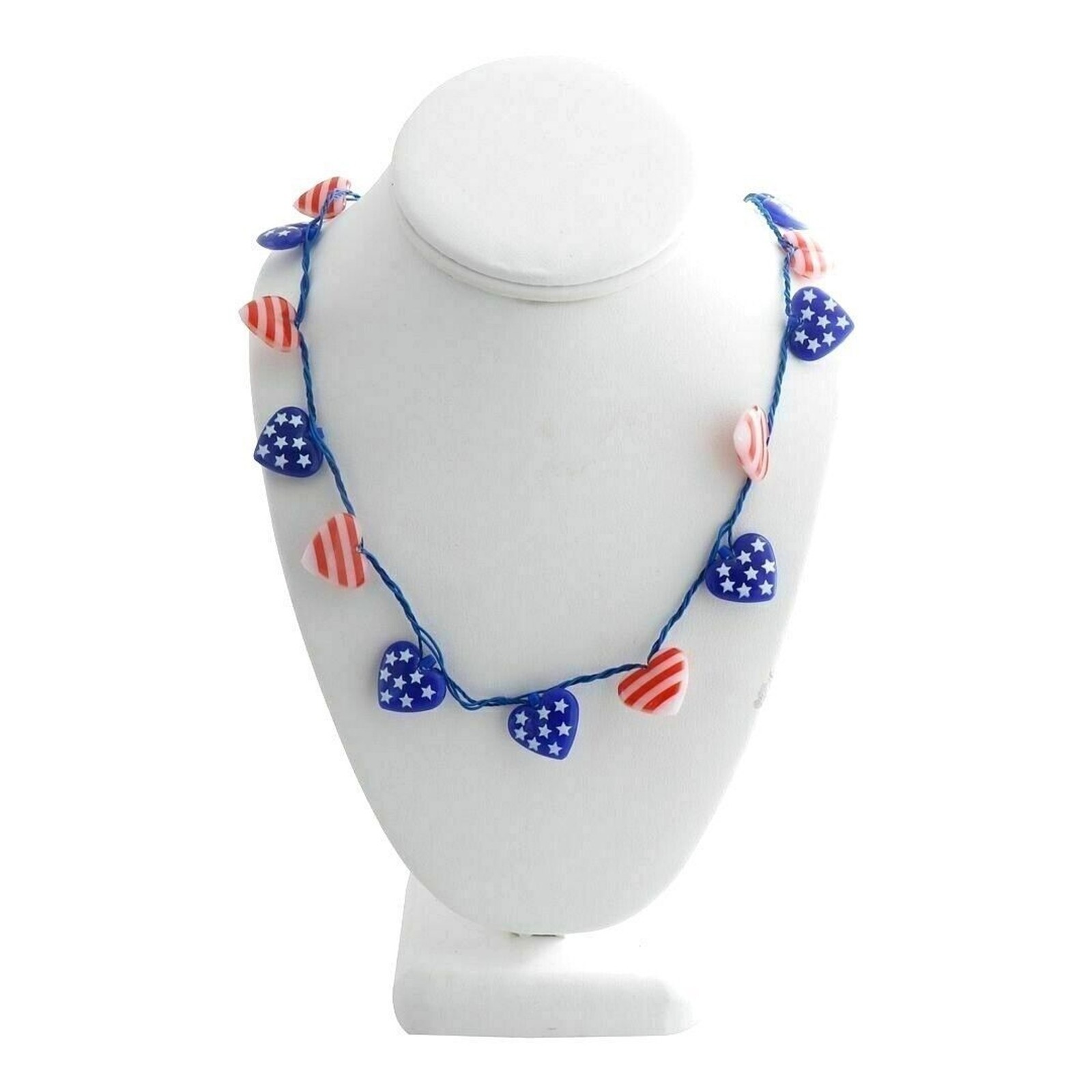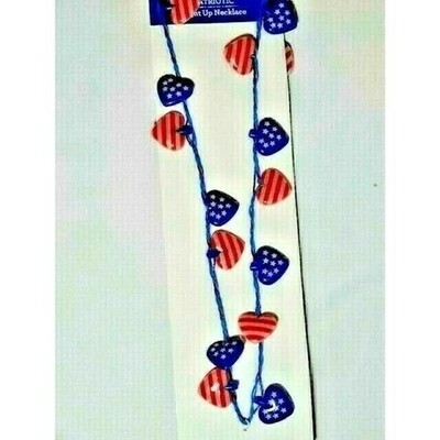 - Patriotic Hearts Light Up Necklace Stars Stripes Red White Blue 36-inch Gift NEW