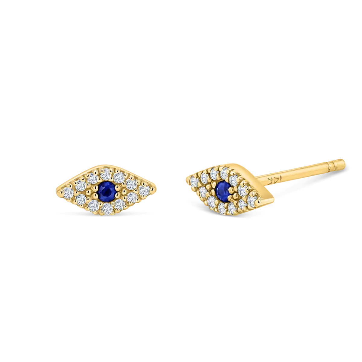 The Pave Diamond Evil Eye Earrings are handset with a 0.06ct sapphire and a total of 0.08cts of diamonds.