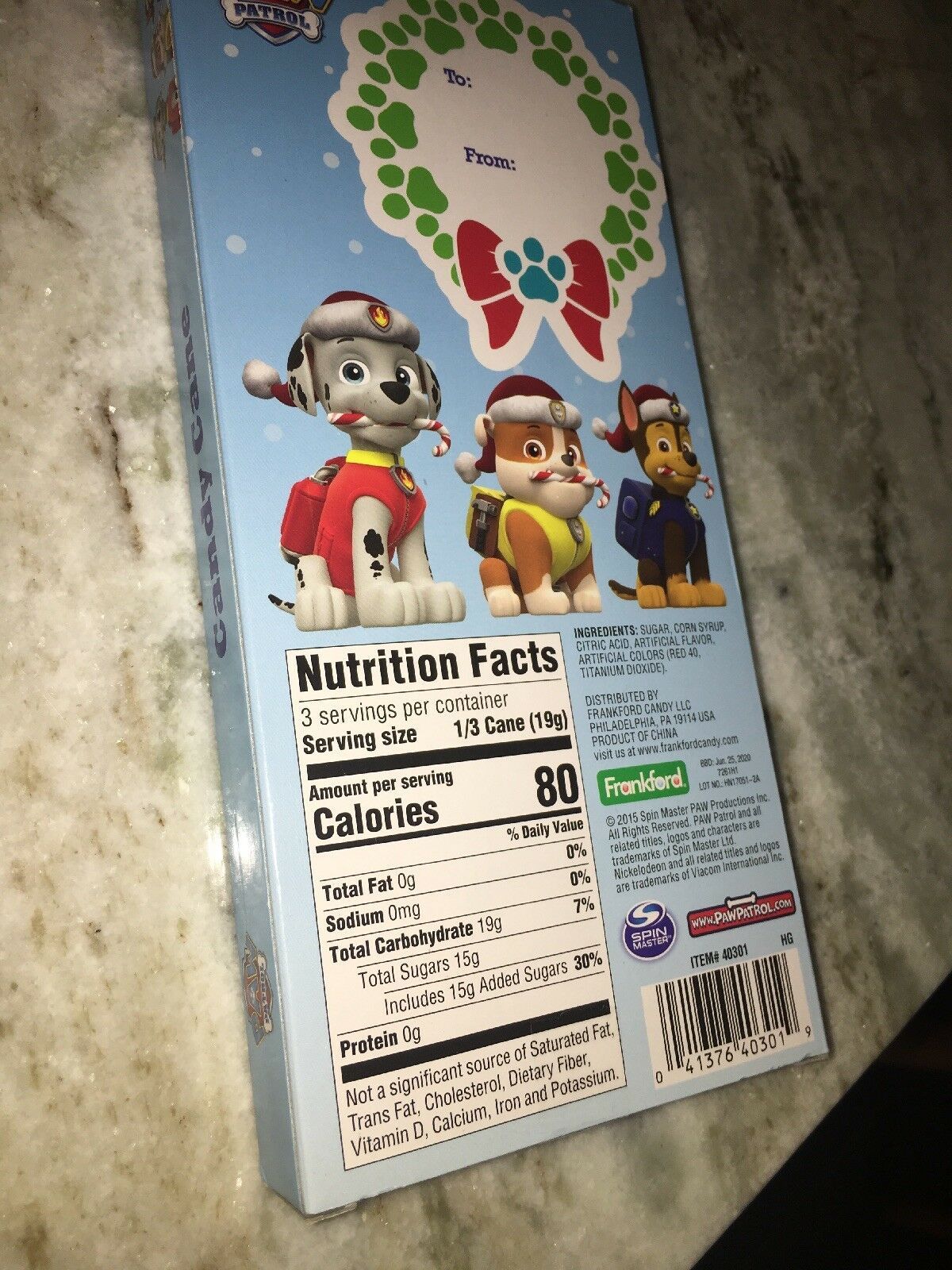 Paw Patrol Large Candy Cane New Cherry