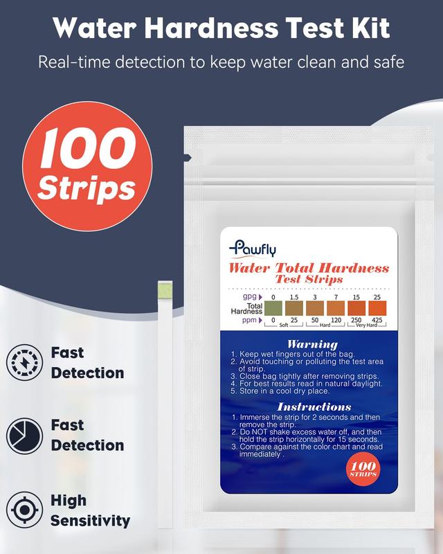- Pawfly Hardness Test Kit - 100 Strips for Drinking, Tap, Well, Pool & Spa Water