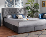 - Paxton Gray Velvet Fabric Upholstered 2-Drawer Queen Size Platform Storage Bed