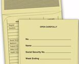 Product description: Item Number 750 Payroll Envelope. A payment envelope and pay statement in one. Compact envelopes come with pre-printed areas you can use to give employees a complete record of their earnings and deductions. Tough manila stock protects contents. Gummed flap seals securely when moistened Envelope Size: 3 1/8 x 4 5/8 Pricing is for 500 envelopes