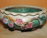 - Peach Fruit Branch 7"x3" Chinese Bowl Planter Polychrome Drip Glaze Majolica