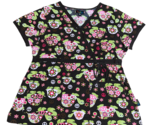 Peaches Brown Pink Turtle Floral Peace Sign Hippie Size Medium Scrub Top Shirt