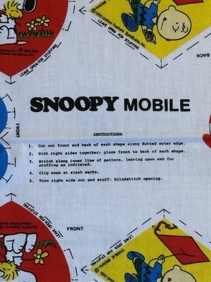 - Peanuts Snoopy Mobile Cut And Sew Craft Pillow Blanket Fabric Panel Vintage