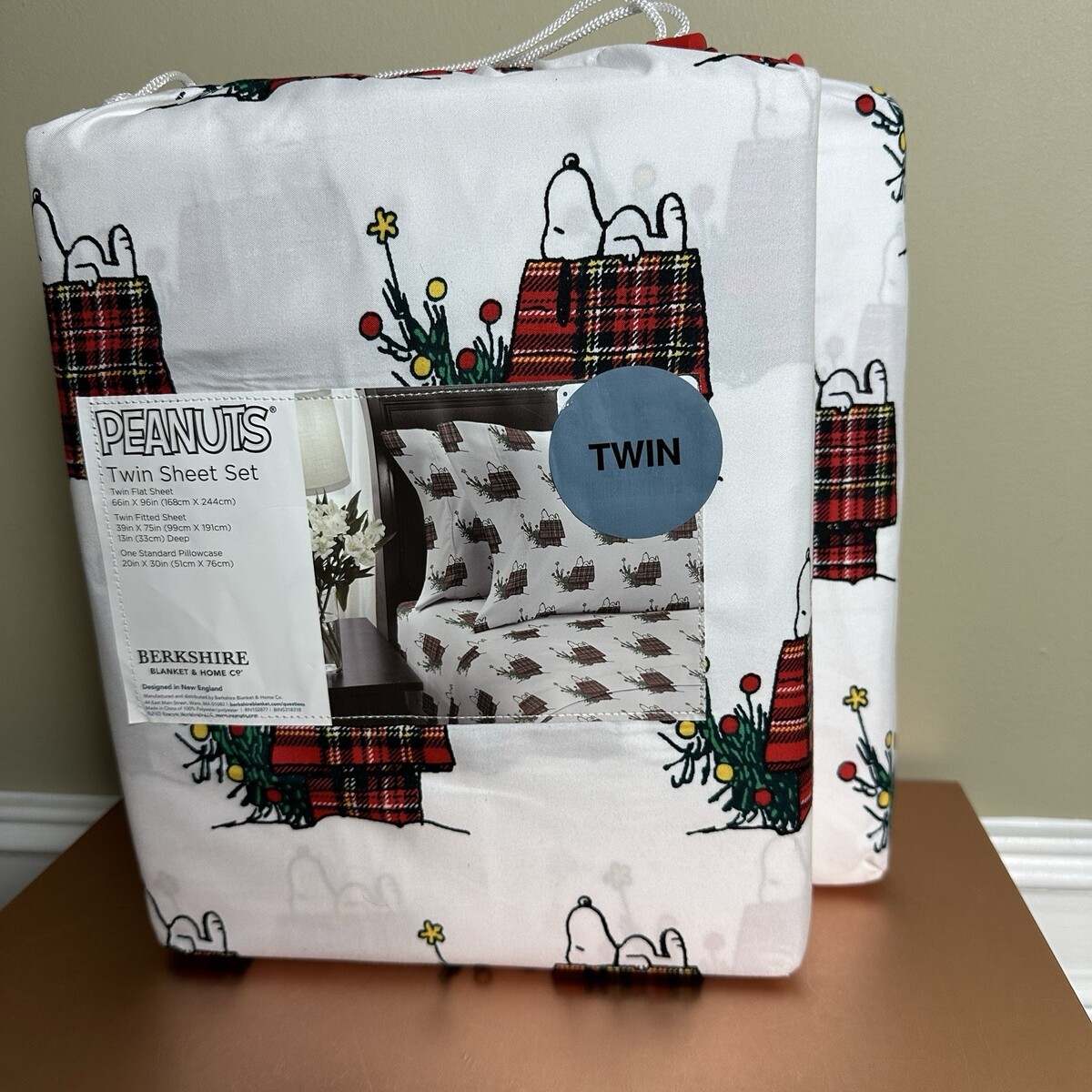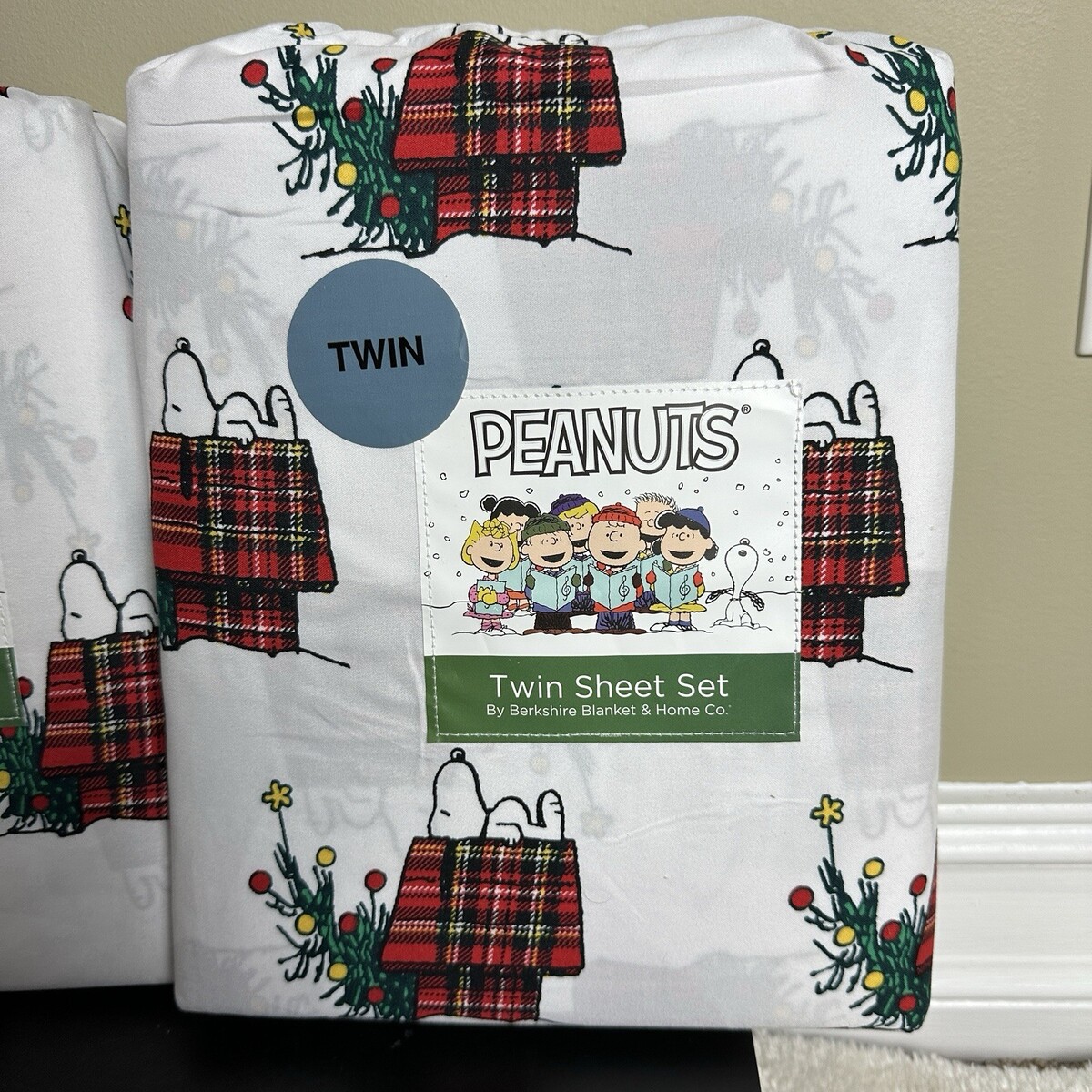 - Peanuts Snoopy PLAID Doghouse Christmas Tree Lights TWIN Sheet Set. NEW