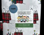 Peanuts Snoopy Woodstock PLAID Doghouse Christmas Tree TWIN Sheet Set