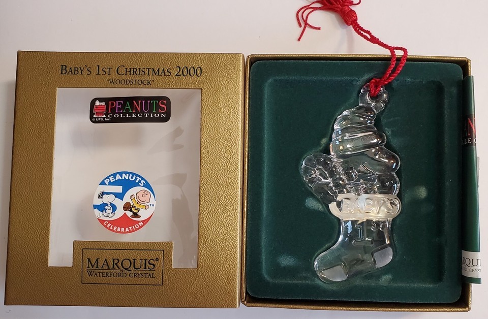 Woodstock - Baby's 1st Christmas (2000) - the 2000 is etched on Woodstock's hat, and "Baby's 1st" is on the stocking.