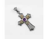 - Pedro Cross Natural Amethist Two Tone Bronze & Sterling Silver Pendant