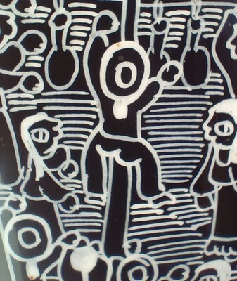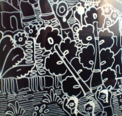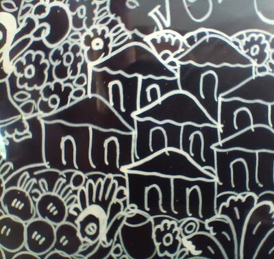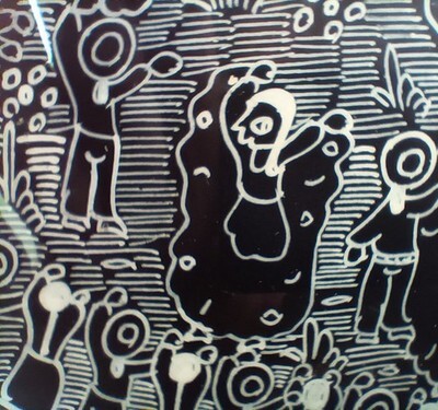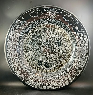 - Pedro Marcos Black & White Large Ceramic Platter 16.5" Dia. Mexican Folk Art OBO