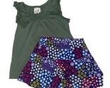 Peek Girls Green Ruffle Tank & Lands End Floral Skort Set Size 4-5/5-6