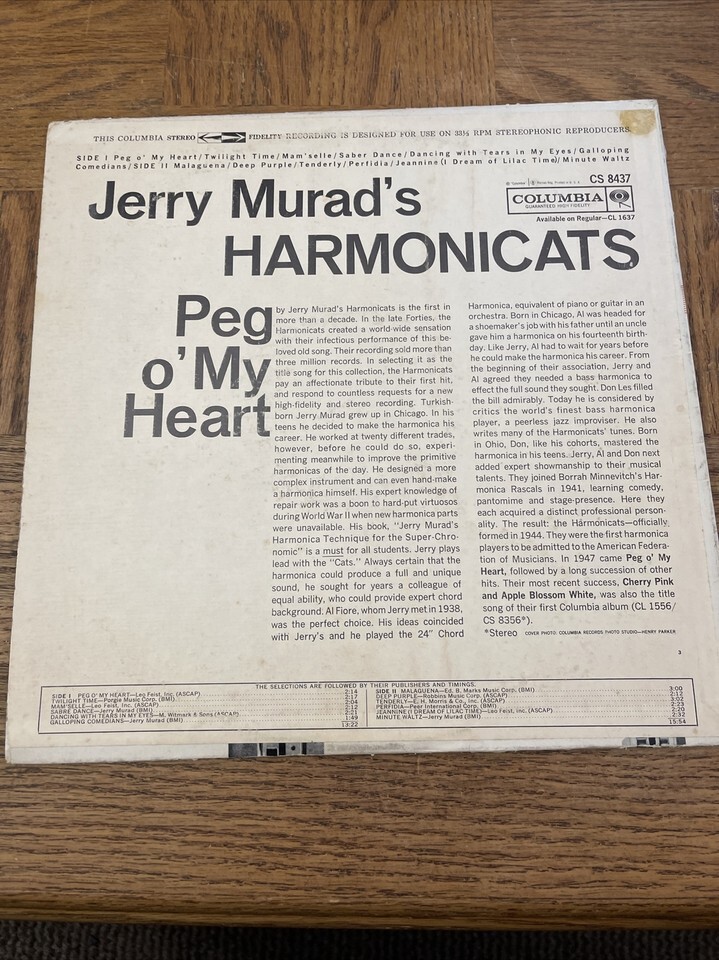 Experience the sweet melodies of the Peg O My Heart Harmonicats Album. This classic vinyl record features various artists and is perfect for any music lover's collection. The format is sure to provide a delightful listening experience for any occasion. Add it to your vinyl record collection today and enjoy the timeless tunes of the past.