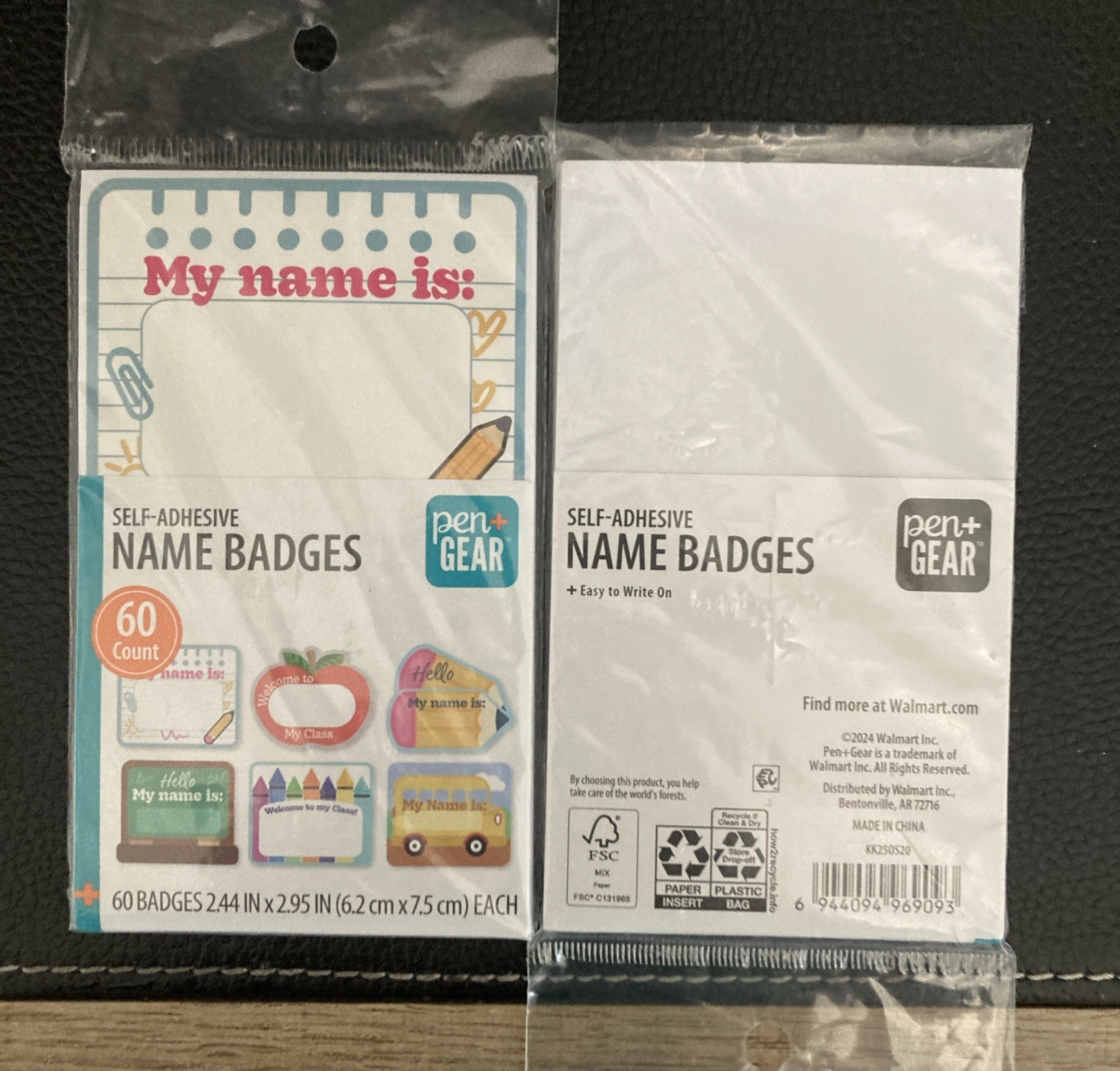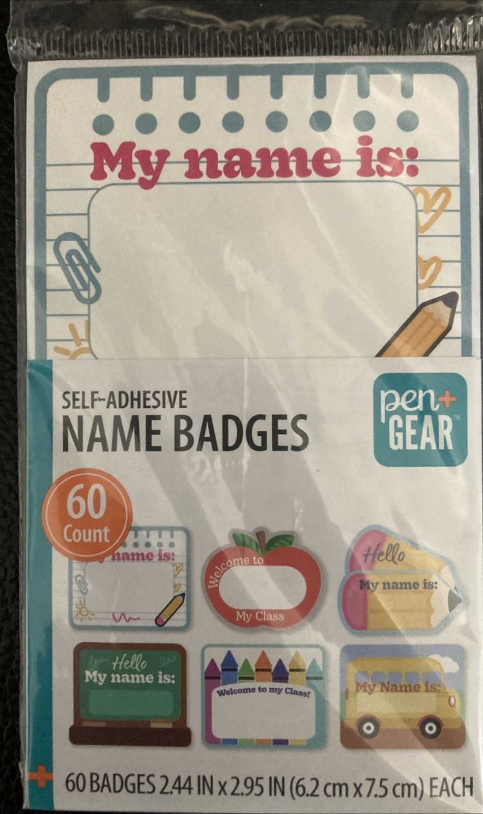 Pen Gear 120 Self Adhesive Name Badges 2.44in X 2.95in. (2 Pack 60 Each) . New.. Condition is New. Shipped with USPS Ground Advantage.