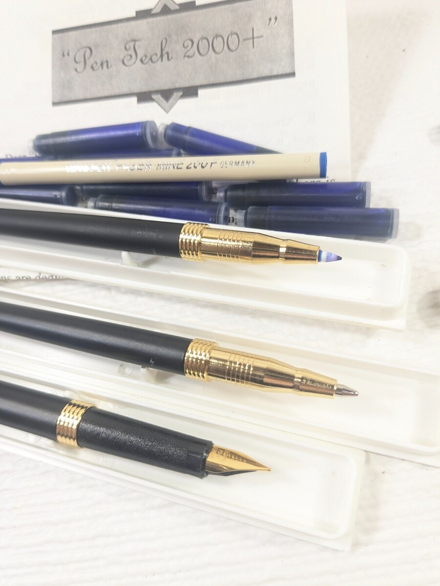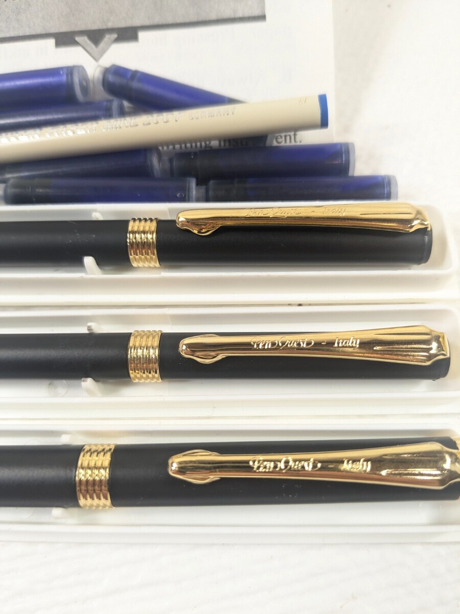 - Pen Quest set 3 pens fountain ball point roller point blue ink Made In Italy