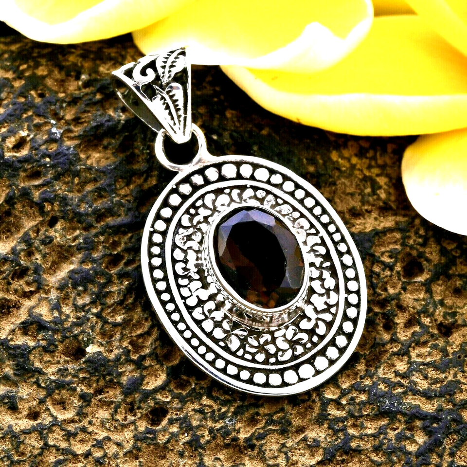 Pendant Smoky Quartz Oval 925 Silver 1.70 CARATS genuine gemstone