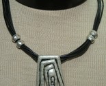 Pendant necklace 17.5-20" on black cord unmarked possibly plated pewter Israel