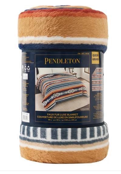- Pendleton Blanket Multicolor Saltillo Stripe Queen Luxe Faux Fur 98 in X 92 in
