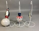 - Penguin On Ball Glass Ornament (missing topper)/Patriotic Glass Snowman & Pengui