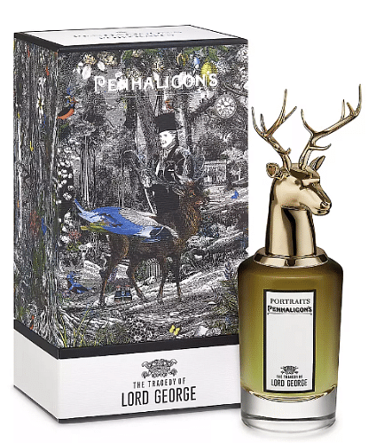 Penhaligon's The Tragedy of Lord George EDP is a woody eau de parfum. Lord George is a wealthy and respected man, the archetypal patriarch. He seems to embody the noblest values of the aristocracy: virtue, respect, loyalty and faithfulness. His fragrance reflects his essence; seemingly traditional, yet with hidden secrets.