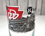 This 1987 souvenir glass features the Pennsylvania Railroad?s iconic K4s steam locomotive, illustrated by Frank Evans. A collectible piece of rail history perfect for train lovers or vintage glassware fans.