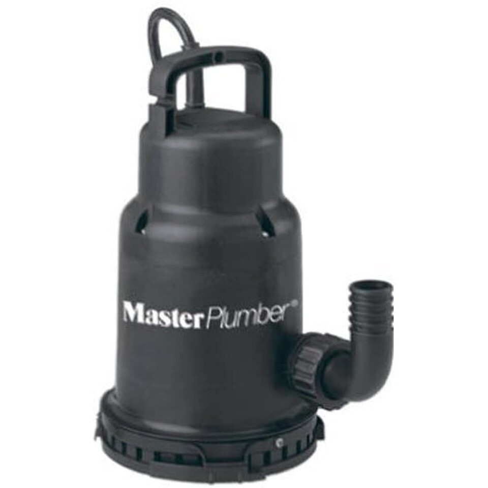 Master plumber, 1/3 hp, stainless steel heavy duty submersible waterfall utility pump, 15' power cord, 1-1/2 inch barbed fitting Garden hose Adapter, maximum pumping capacity to 2,400 gallons per hour, designed for continuous operation, ideal for waterfalls streams, requires 275W pump, quiet, oil free motor safe for fish plants, performance: gph at 0' = 2400, 5' = 1920, 10' = 1380, 15' = 780, 20' = 240, 2 year warranty.