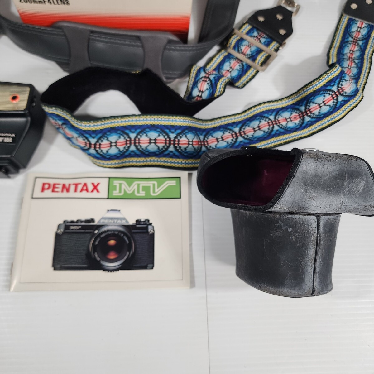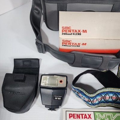 - Pentax Asahi MV SLR 35mm Film Camera Flash 200mm & 50mm Lenses Case Bag Manual
