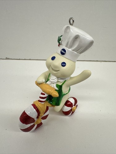 Add a delightful touch to your holiday decorations with this Peppermint Twirl Tri Cycle Danbury Mint Pillsbury Doughboy Glitter Ornament. The ornament features a colorful design and is made of durable plastic that ensures long-lasting use. It is a perfect addition to your collection of decorative collectibles. Celebrate the holiday season with this unique and attractive ornament that is sure to catch the eye of your guests.
