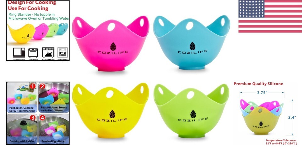 - Perfect Poached Eggs Made Easy - Silicone Cups in Blue, Green, Yellow (4 Pack)