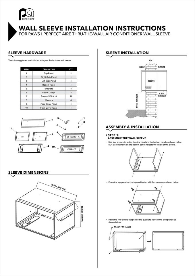 - PerfectAire PAWS1 Thru-The-Wall Air Conditioner Sleeve, Fits Standard 24-Inch T