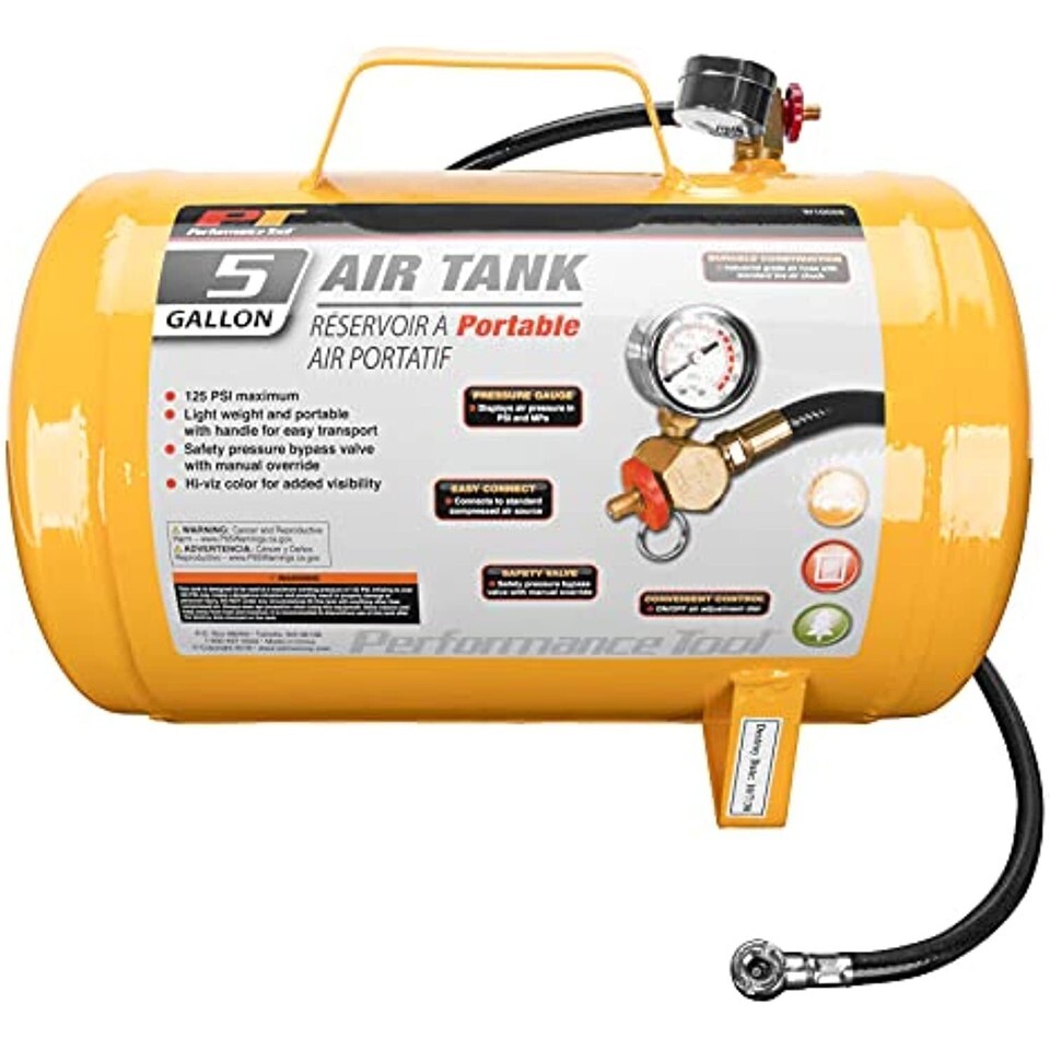 - Performance Tool W10005 Hi-viz 5-Gallon Horizontal Portable Air Tank With Tire