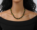 ?Style/Features: Simple but pretty deep peridot green glossy black beads with square sided focal beads