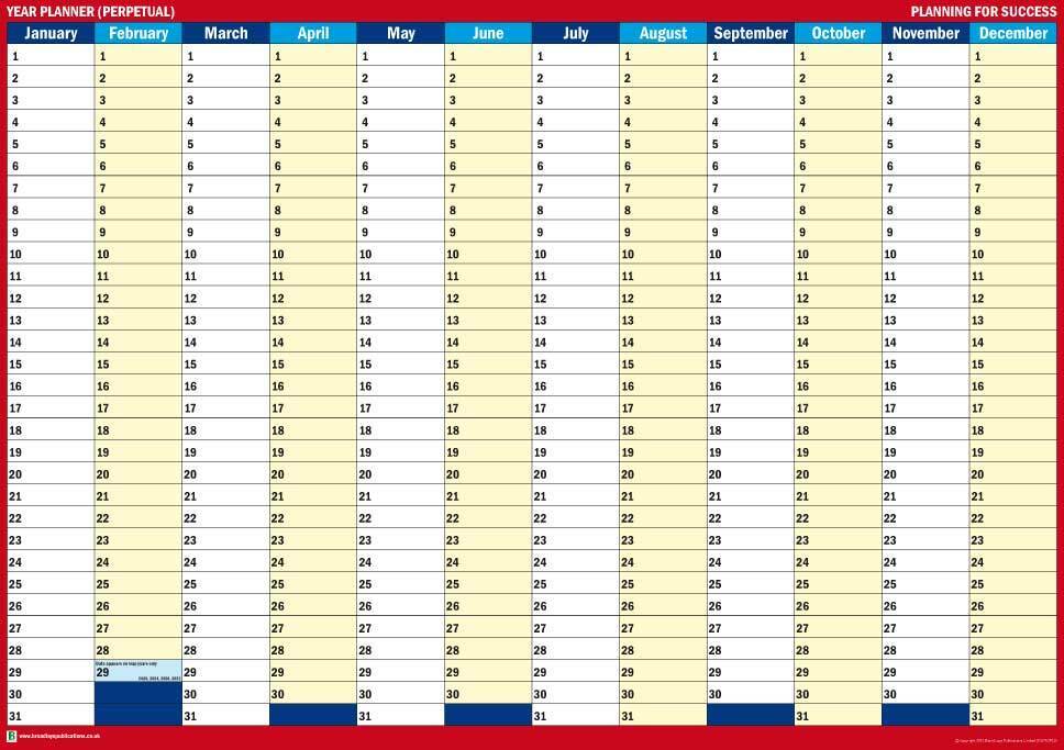 - Perpetual Year Planner Calendar Office Glossy Poster A2 59cm x 42cm BLPA2P13