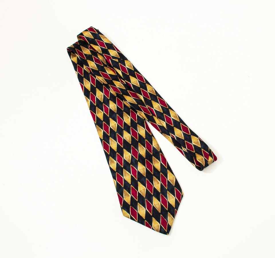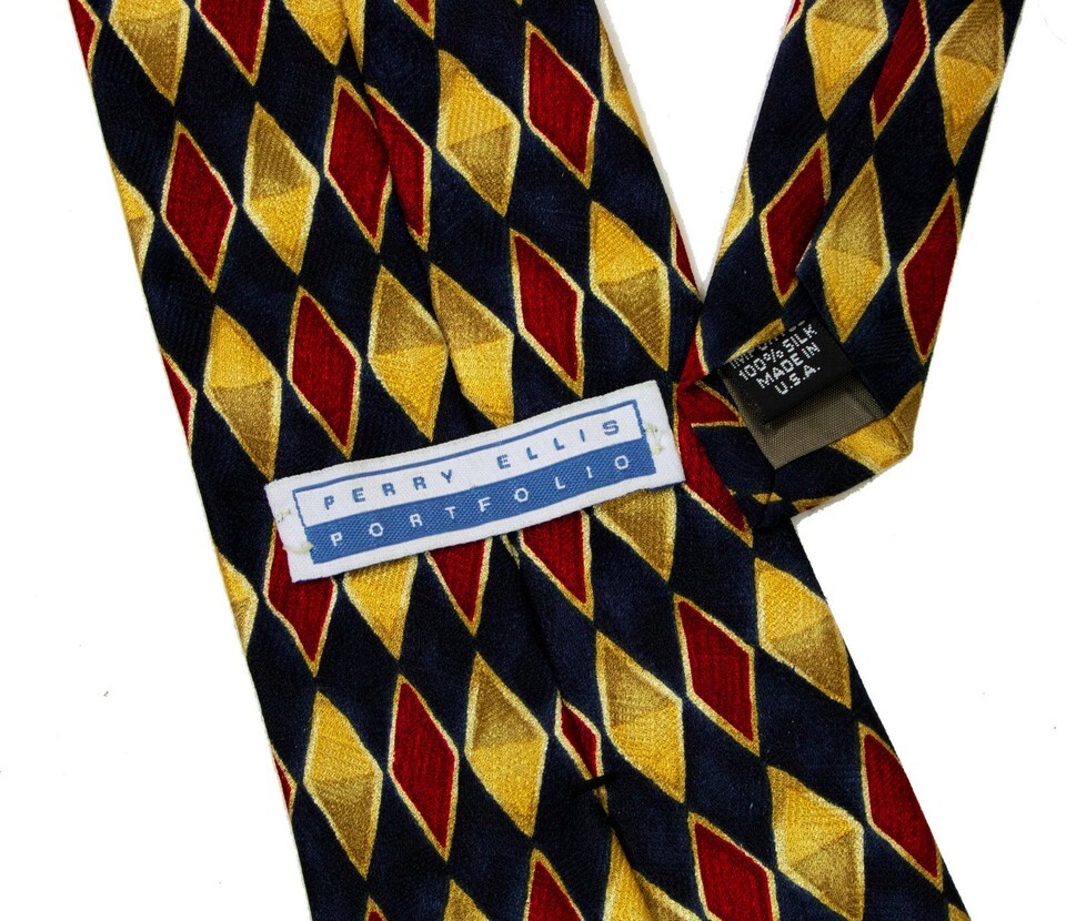 - Perry Ellis Portfolio Mens Tie Gold Burgundy Silk