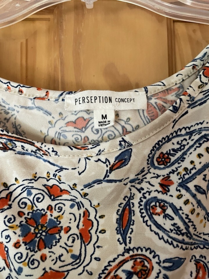 The Perseption Concept Short Sleeve Tie Front Top in size medium is a stylish blouse designed for women. Featuring a tie closure and short sleeves, this top offers a modern and trendy look. The multicolor design adds a fun and vibrant touch to the overall outfit, making it a versatile piece that can be dressed up or down for various occasions. Perfect for those looking for a fashionable and comfortable addition to their wardrobe. Has added shoulder cuts.