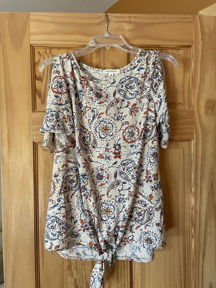 - Perseption Concept Short Sleeve Tie Front Top Size Medium