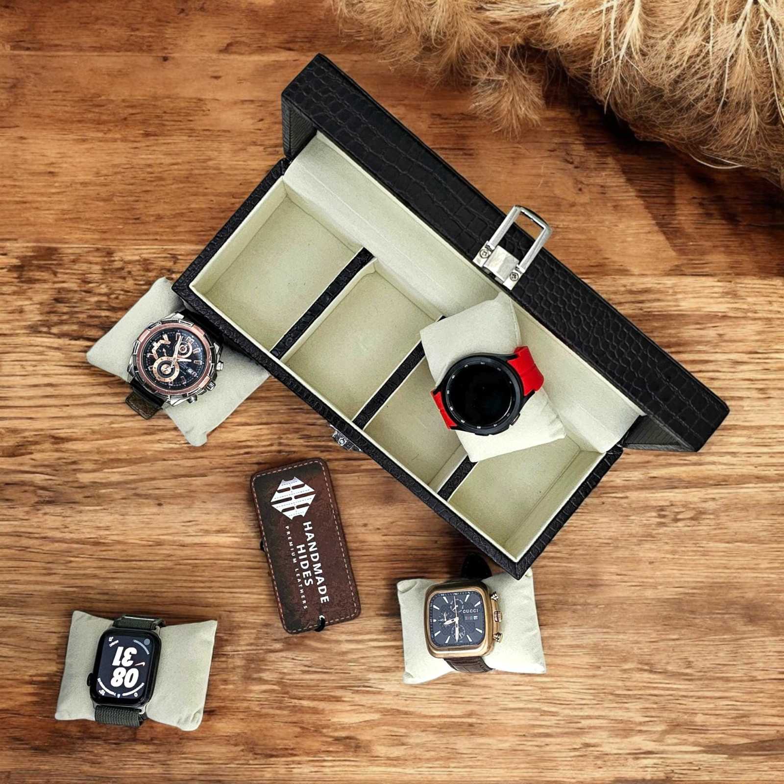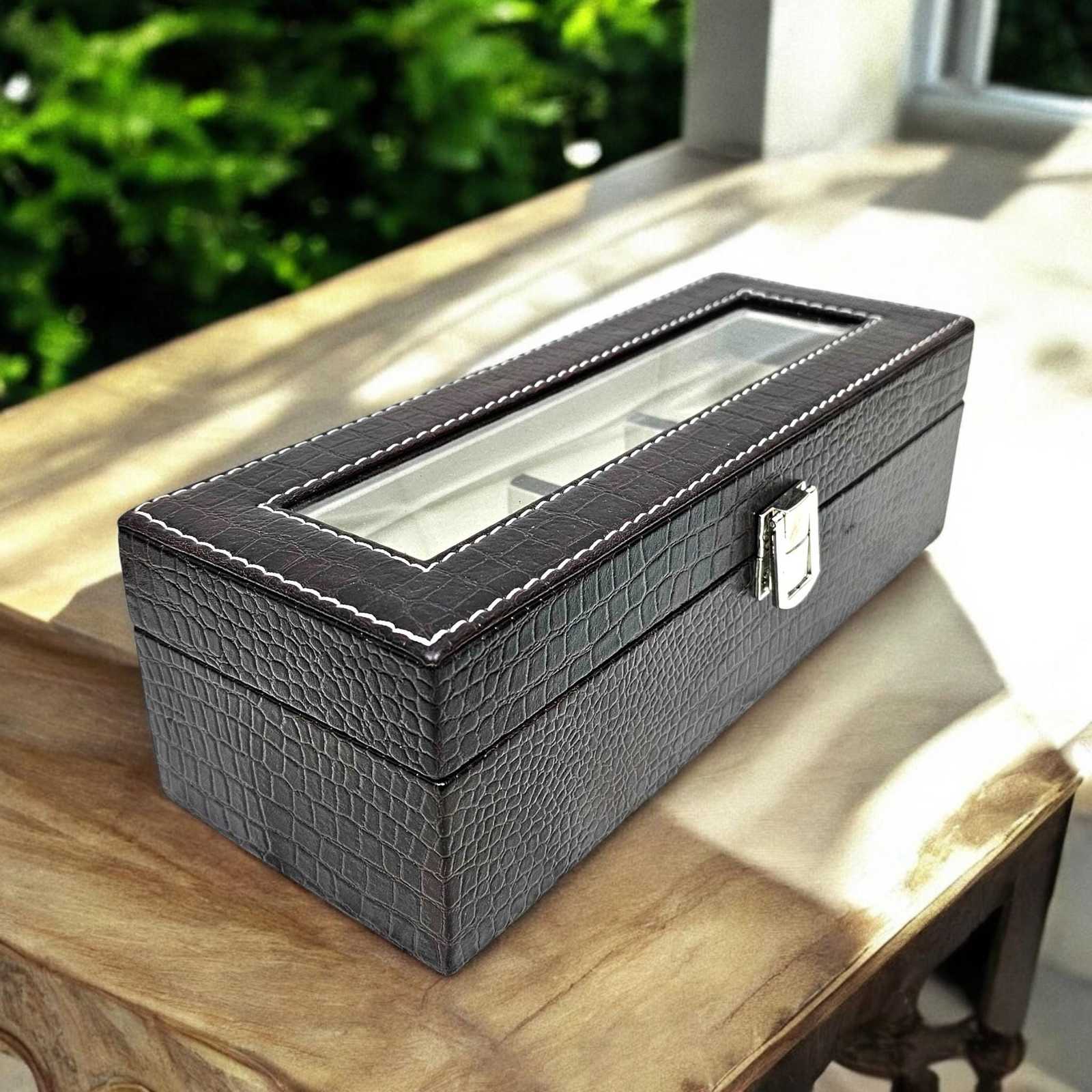 Protect and display your favorite timepieces with our 4 Slot Leather Watch Box – a handcrafted watch storage case designed for both men and women. Made with premium crocodile?embossed PU leather and a clear glass display, this watch box keeps your collection safe, scratch?free, and beautifully presented. Perfect for travel or home use, it’s an ideal gift for him or her on any occasion.