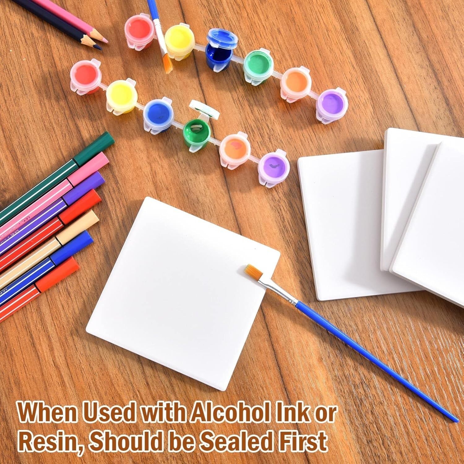 Create a Unique Set: These unglazed ceramic tiles invite your creativity. Perfect for customizing with alcohol ink (please note: glazing is required), markers, crayons, acrylic paint, resin, and other artistic mediums.