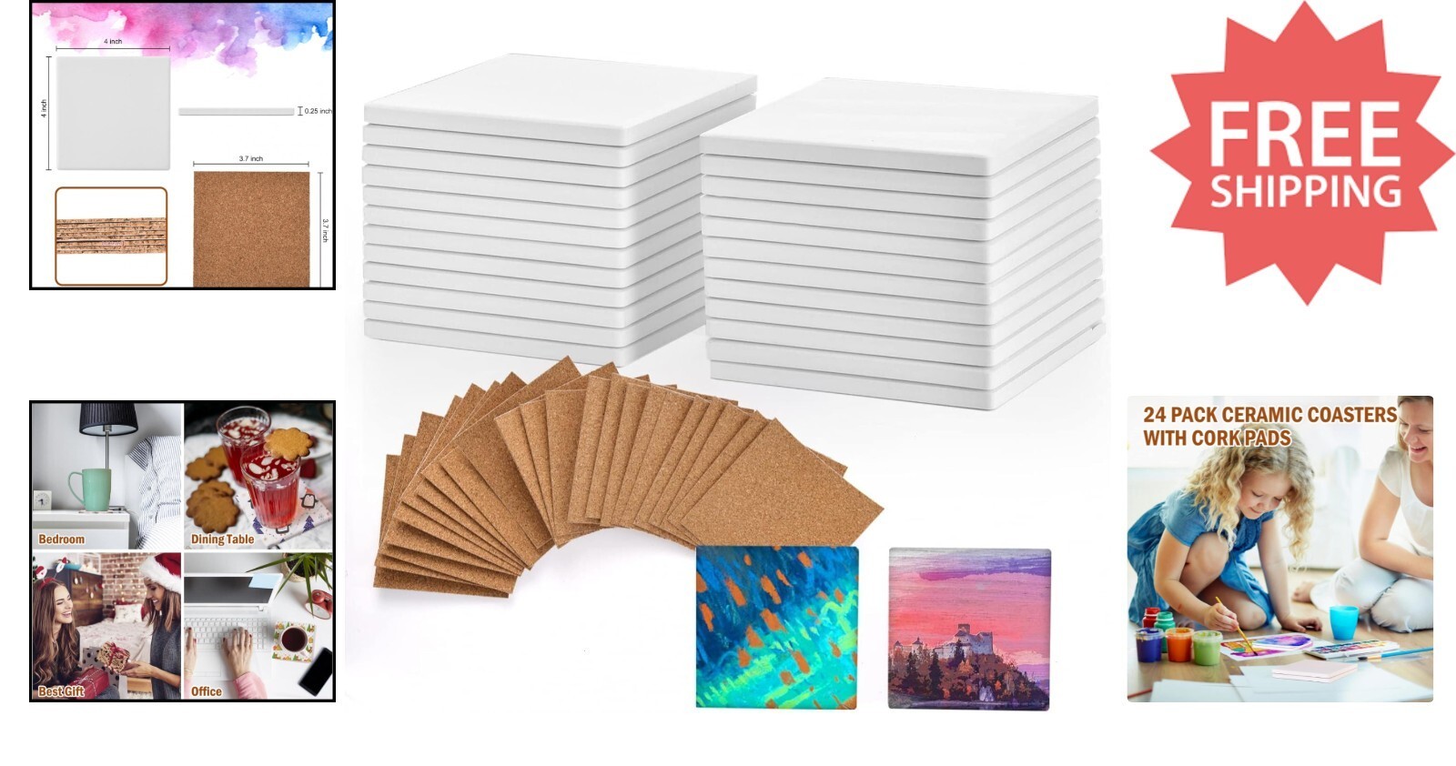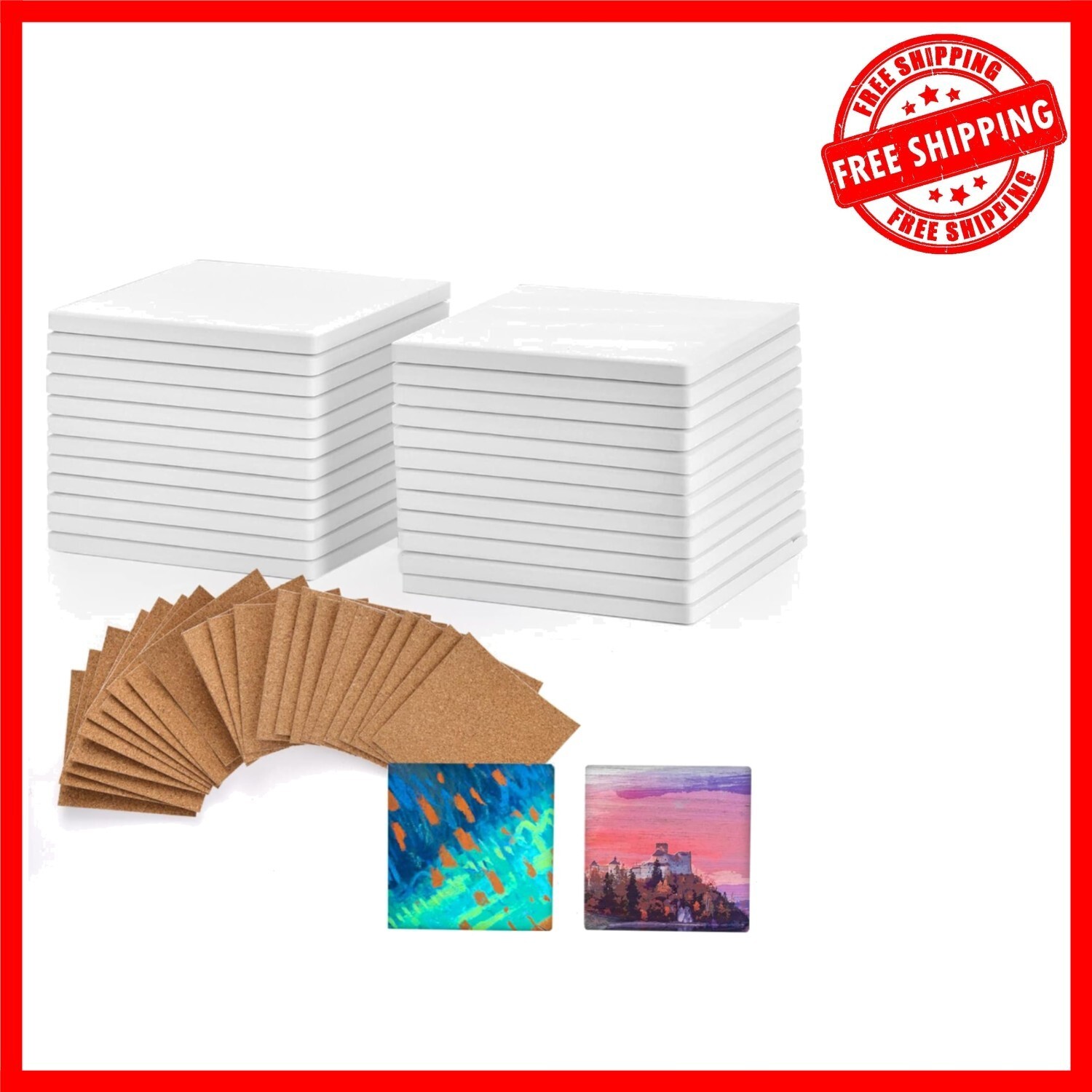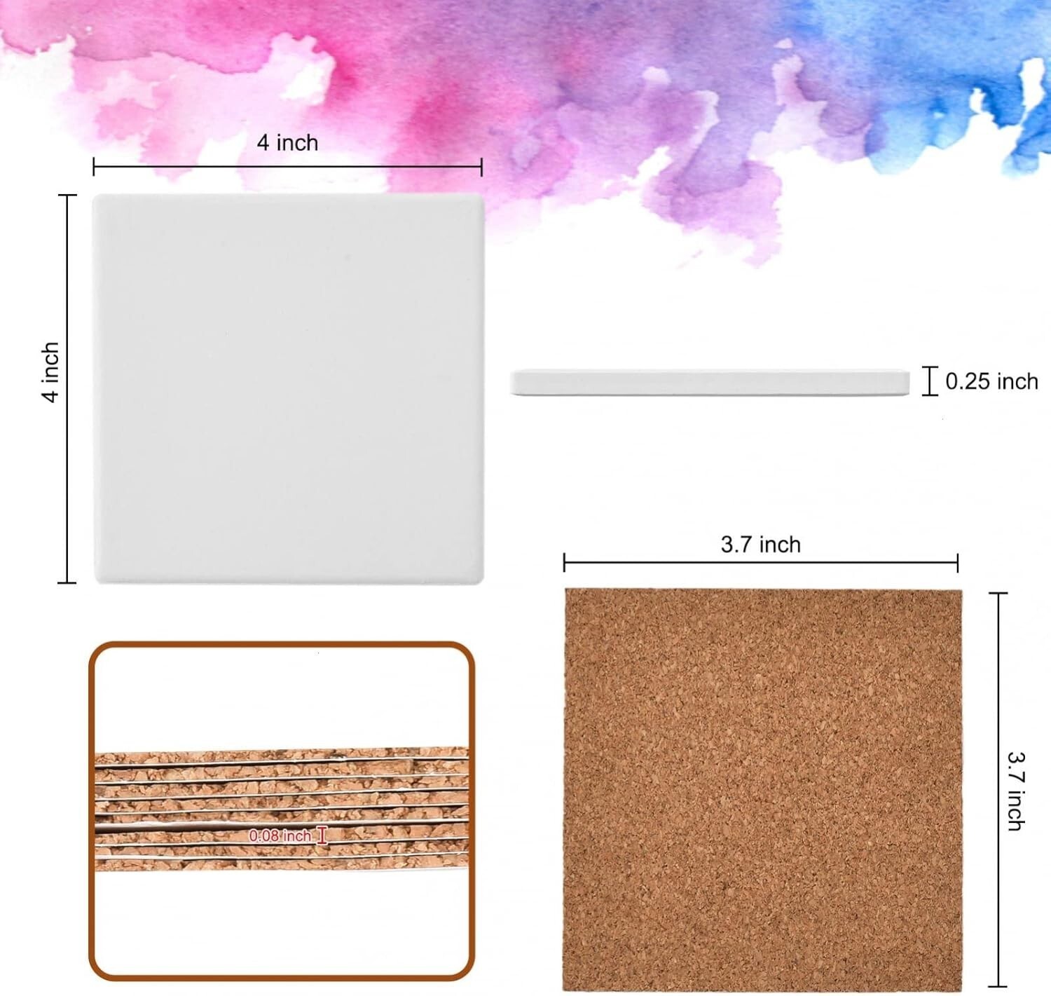 - Personalized 4x4 Ceramic Coasters - 24 Unglazed Crafting Tiles with Cork Pads