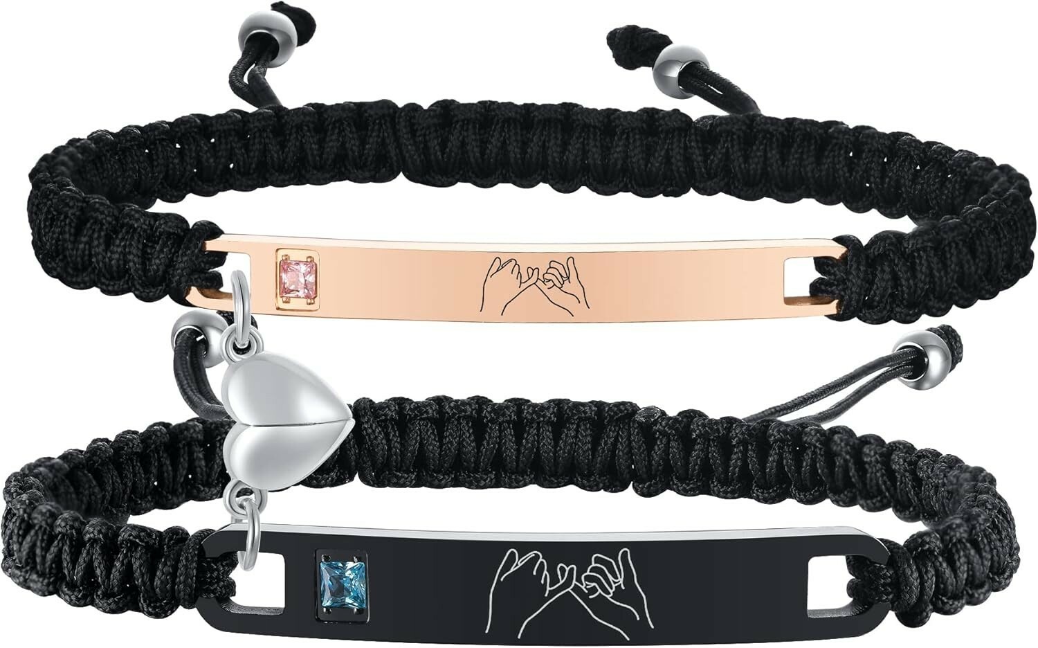 Celebrate your love with this matching set of customizable couple bracelets. Crafted from stainless steel and waxed cord, each bracelet features a polished, anti-allergy finish and an adjustable sliding clasp for a perfect fit. Personalize the stainless steel ID plate with meaningful engravings such as names, dates, initials, or special coordinates ? making it a truly unique gift.