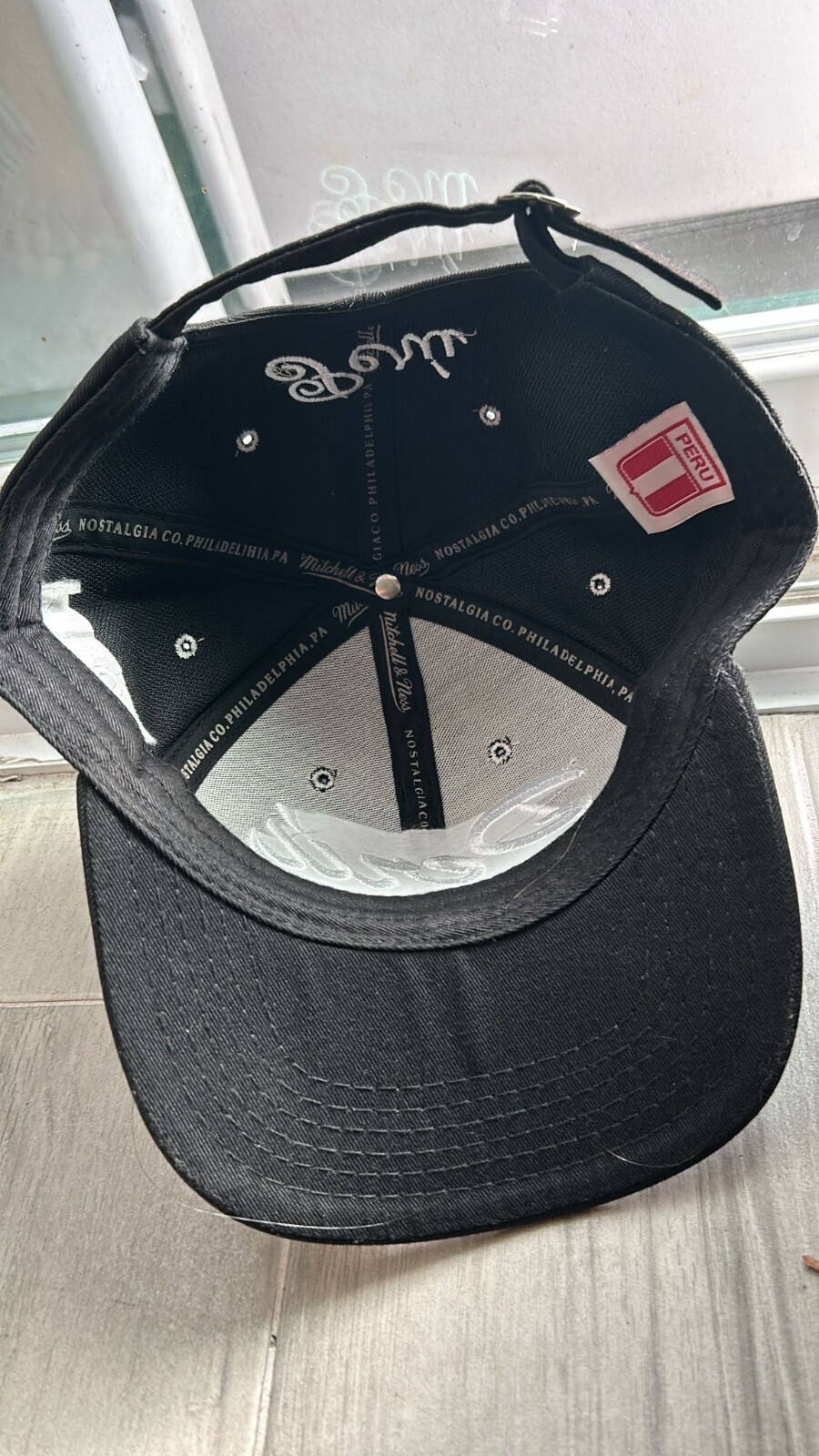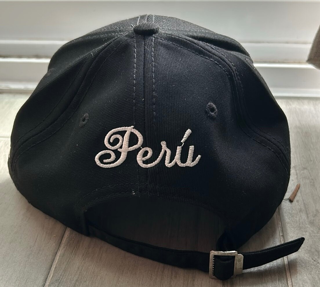 - Peru Black with White Logo Baseball Cap Embroidered Cotton Adjustable Hat NWOT