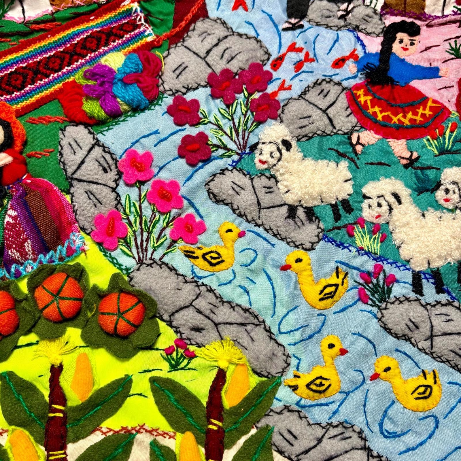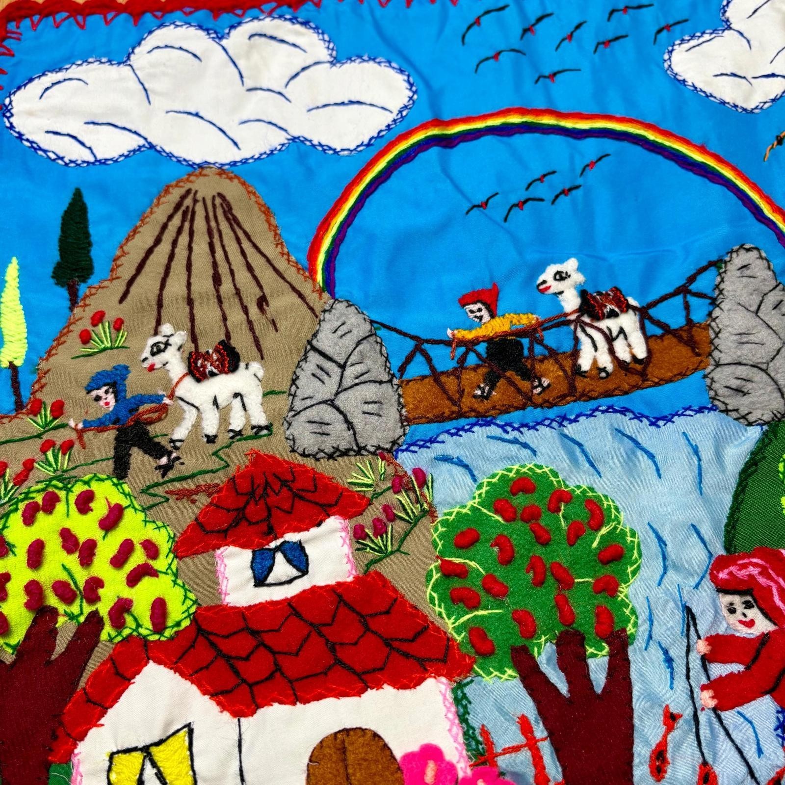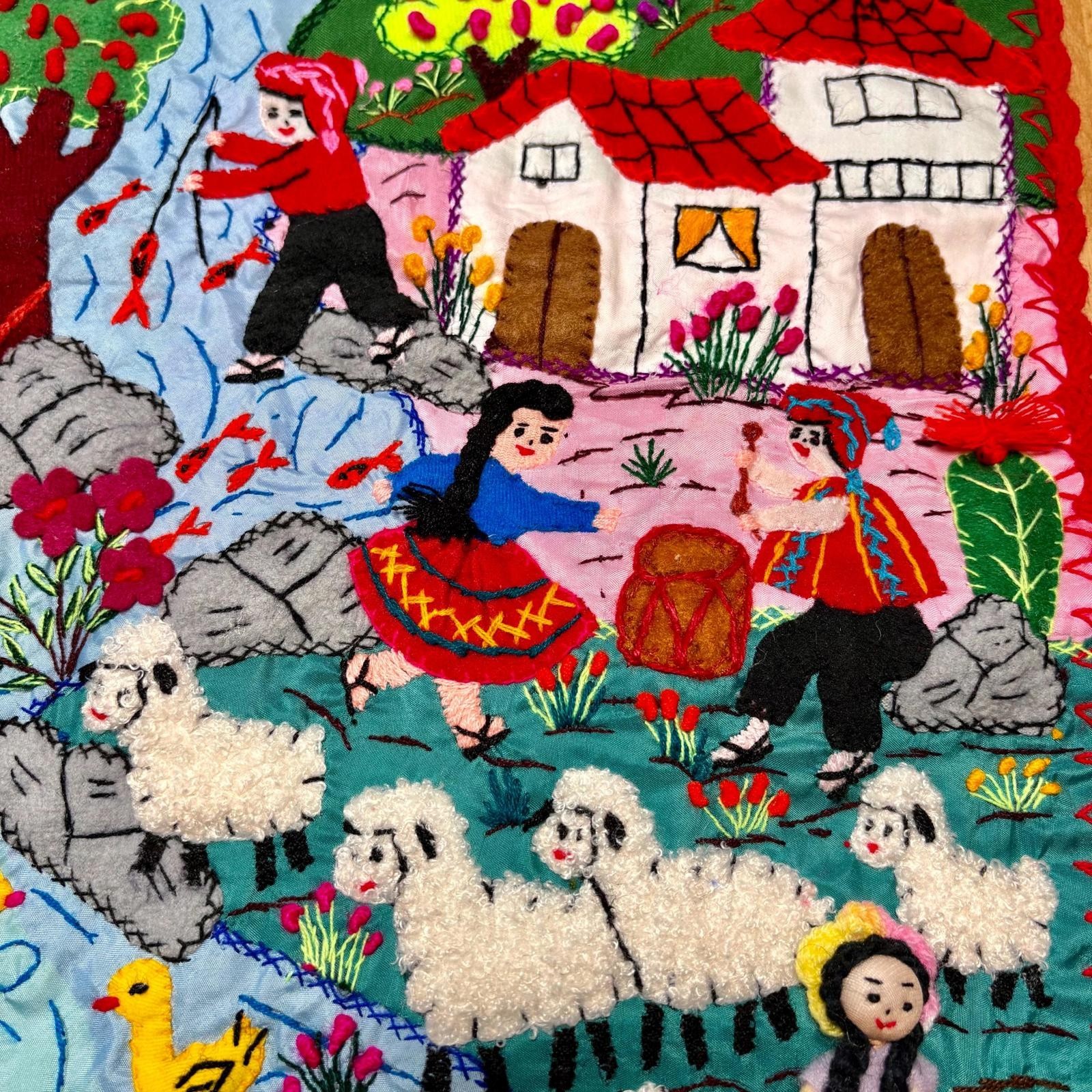 - Peruvian Arpillera 20"x30" Wall Hanging – Handmade 3D Appliqué Embroidered Quilt
