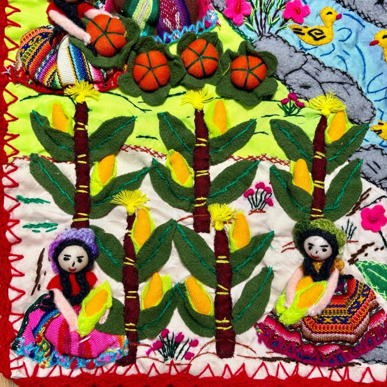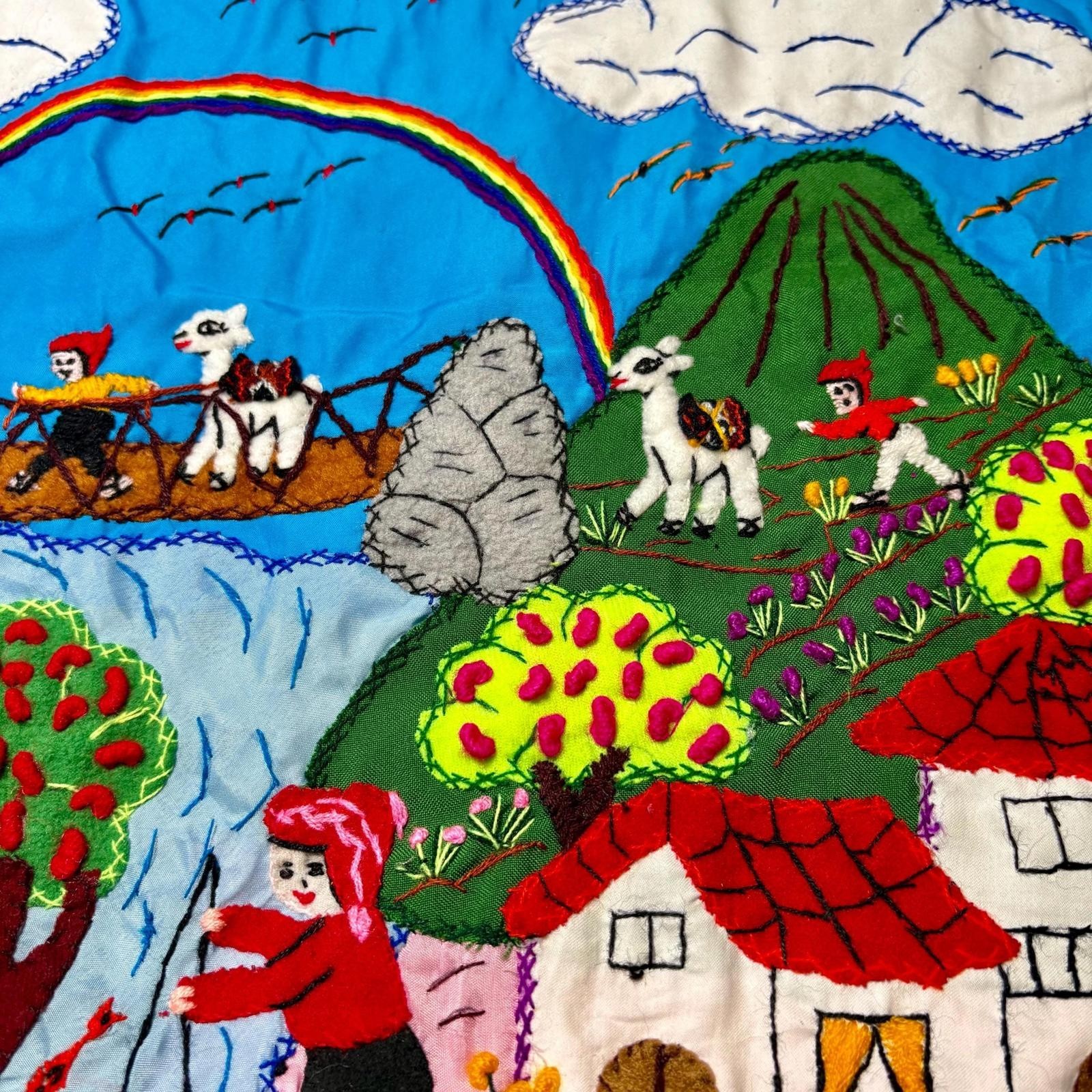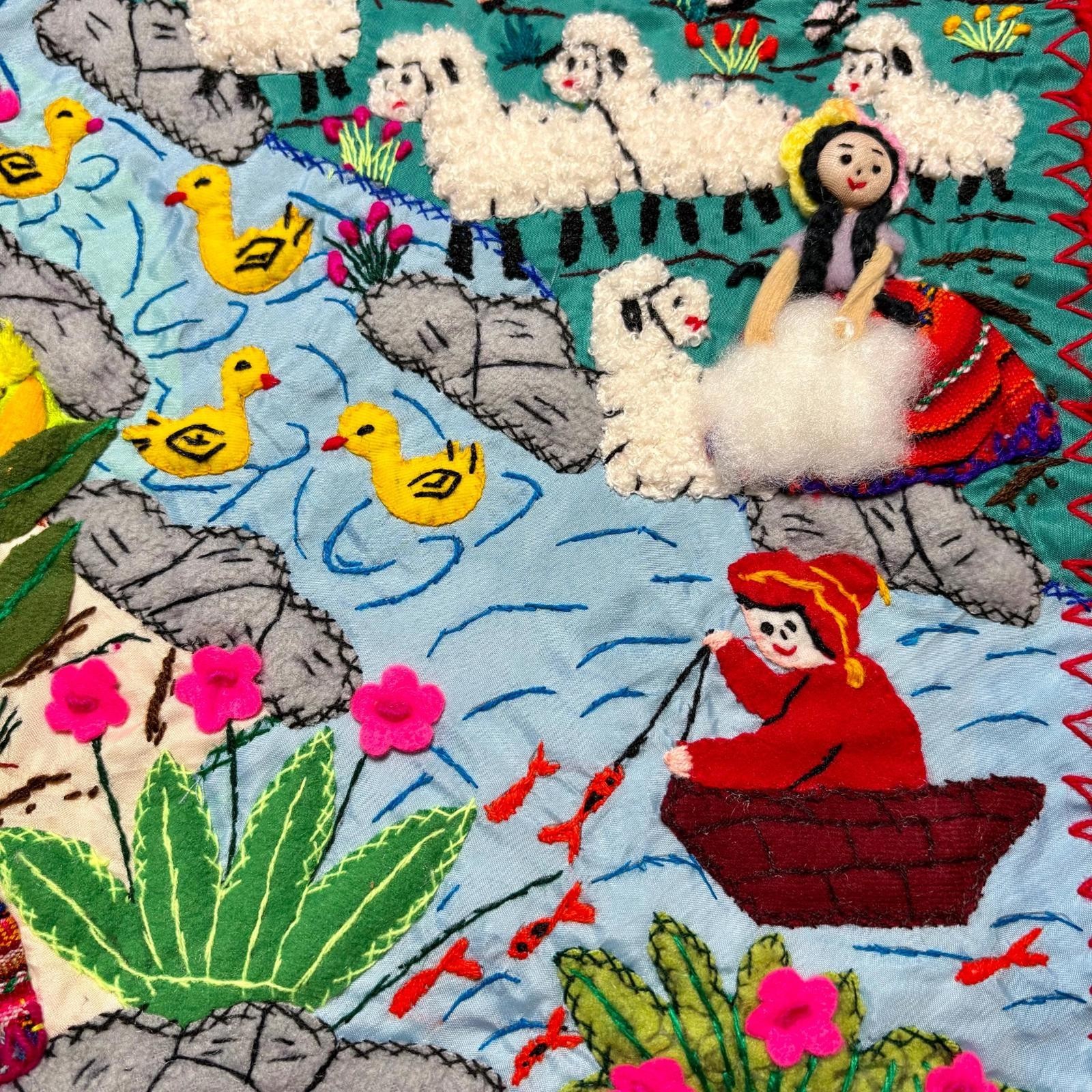 - Peruvian Arpillera 20"x30" Wall Hanging – Handmade 3D Appliqué Embroidered Quilt