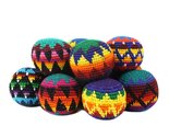 Footbag, also known as a kick bag, is a fun and engaging modern sport where players kick a small bean bag ball and try to keep it off the ground for as long as possible. Whether you're practicing solo or playing with friends, this handmade crochet kick ball provides hours of entertainment while improving coordination and balance. Designed with a tightly woven structure, this durable kick ball ensures that none of its plastic rubber pellets will fall out, making it a reliable choice for continuous play. Each kick bag features a unique combination of geometric tribal patterns and vibrant multicolored designs, making every piece one of a kind. These assorted sets offer a great alternative to traditional outdoor games and activities, adding variety to group play. Lightweight and easy to carry, this versatile footbag is also a fantastic stress-reliever and a fun way to stay active. Measuring approximately 2.5"""" x 2.5"""" x 2.5"""" and weighing 1 oz., these juggling footbags are filled with plastic rubber pellets for optimal weight and control. Handmade in Guatemala by skilled artisans, each piece is crafted with care, ensuring quality and originality.