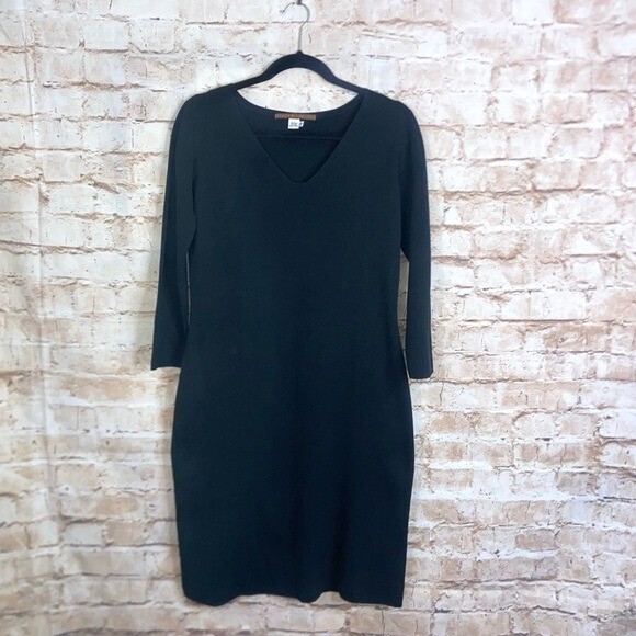 Peruvian Connection Black Cotton Shift Dress Size Medium /100% Pima Cotton / V-neck, 3/4 sleeves