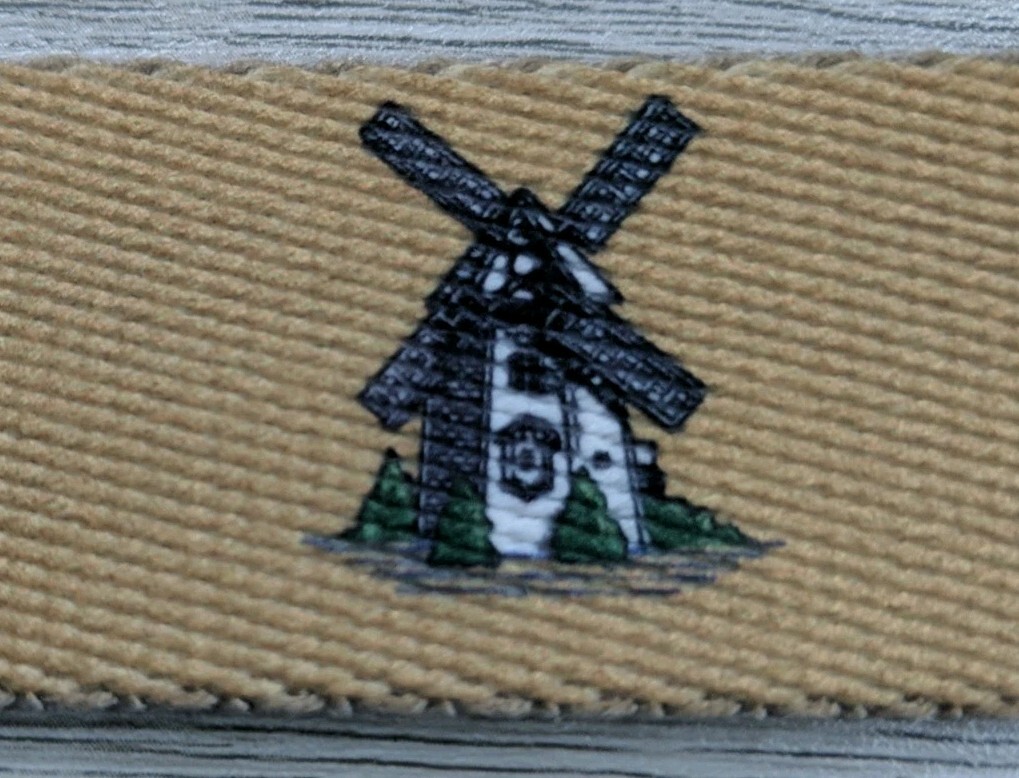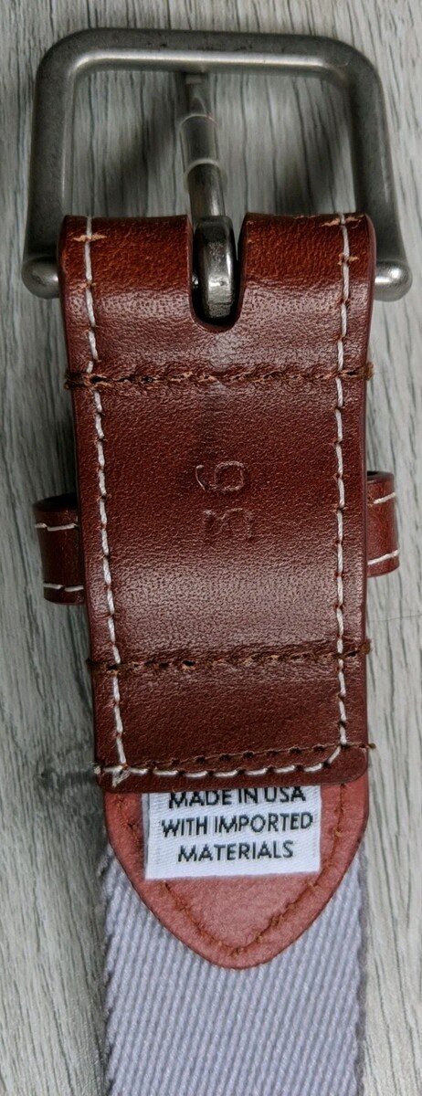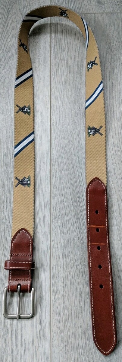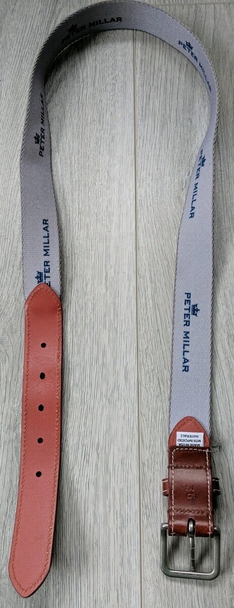 - Peter Millar Belt Mens Gold Canvas Brown Leather Trim Made in USA Golf 36 A3