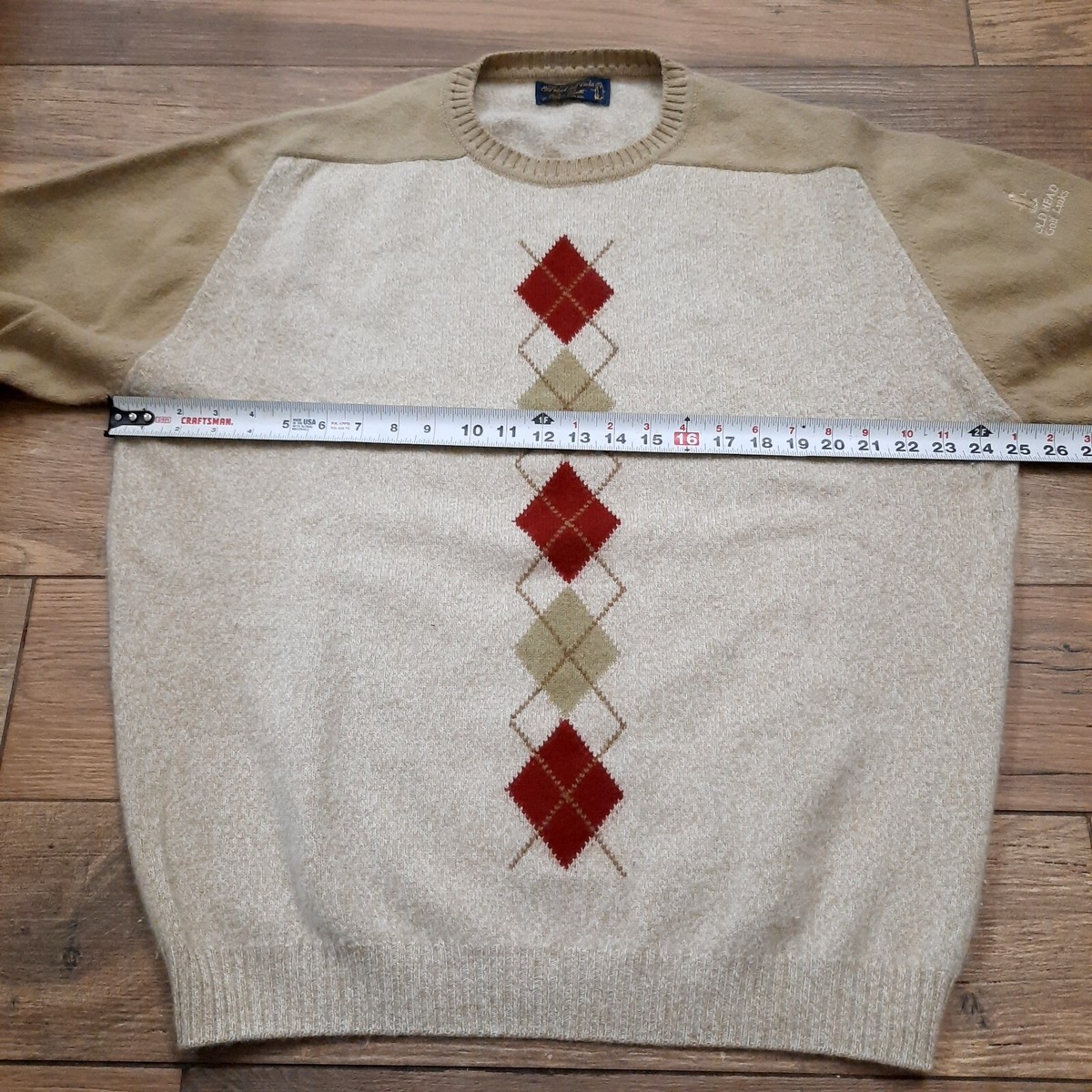- Peter Scott Old Head Golf Links Sweater men's 44 wool angora argyle tan Scotland