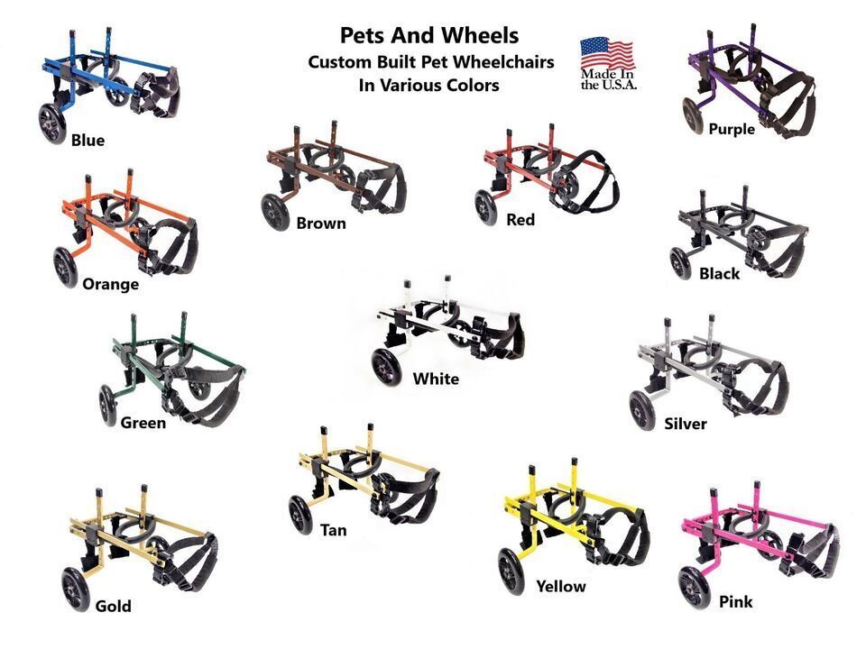 Each Pets and Wheels adjustable pet wheelchair is individually custom made with a variety of