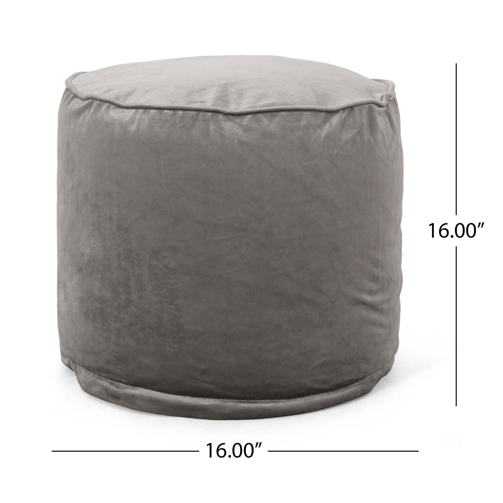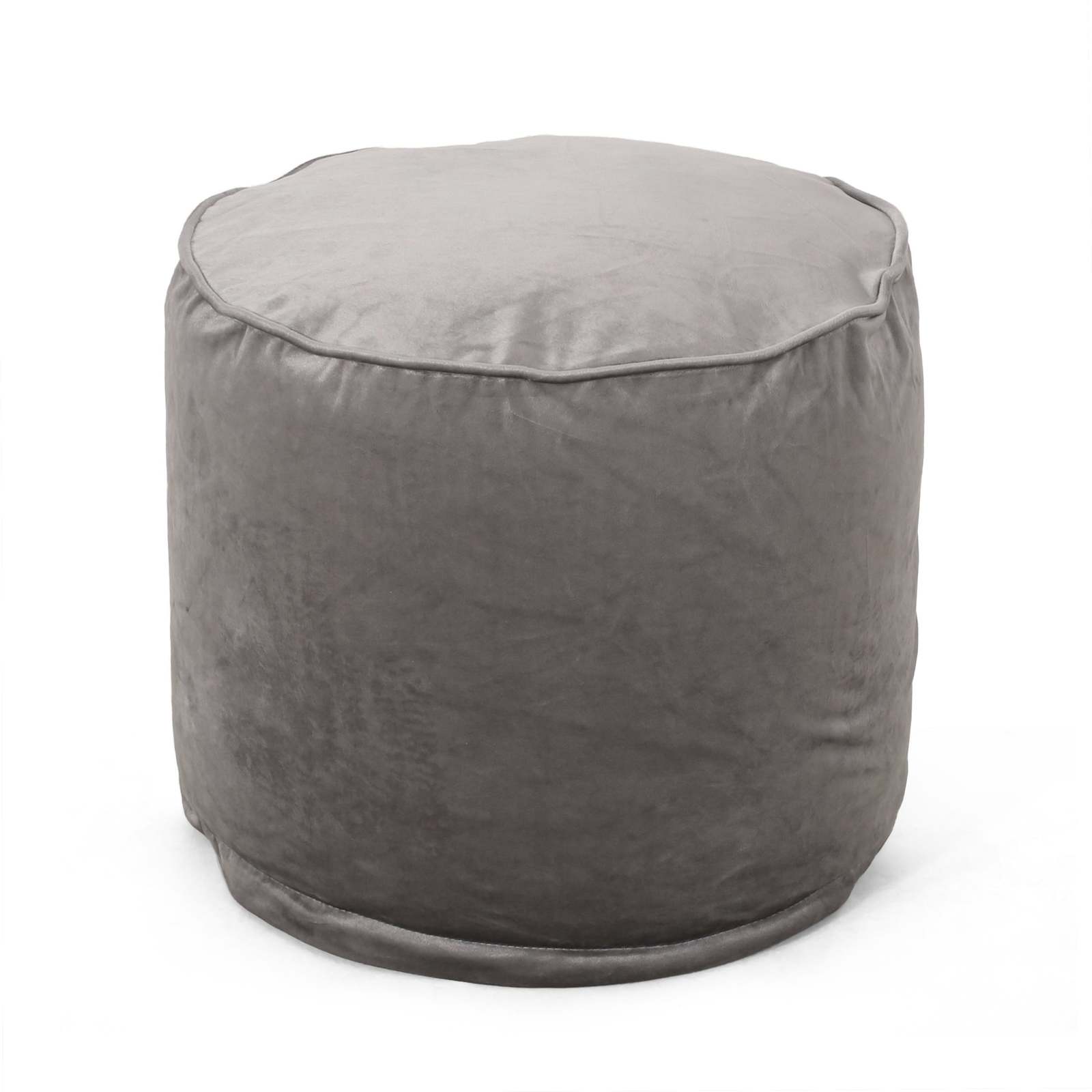 - Pewter Gray Velvet Cylinder Pouf Ottoman Floor Cushion 16x16